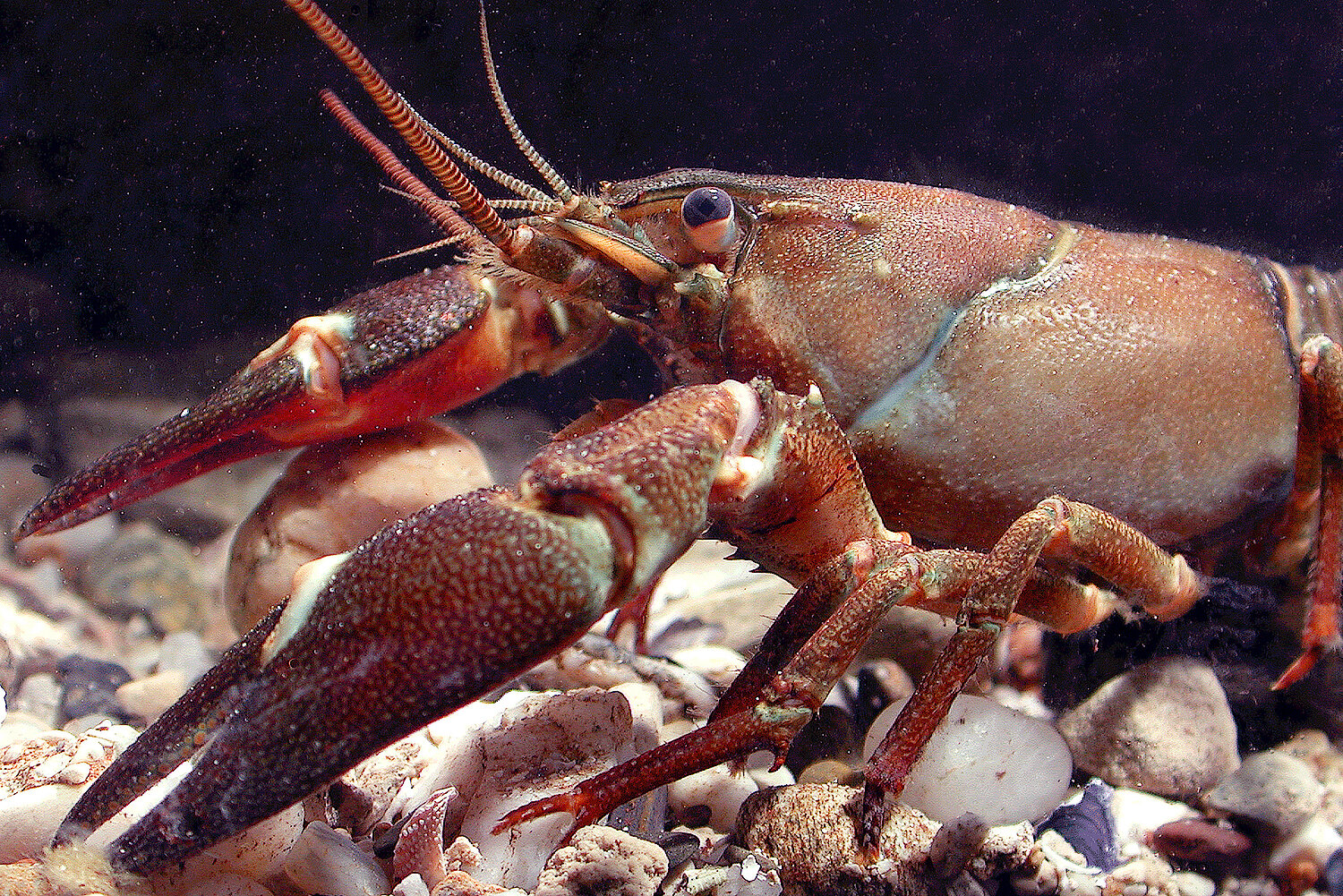 - Der Signalkrebs (Pacifastacus leniusculus) stammt ursprünglich aus Nordamerika, wurde als Speisekrebs importiert.
